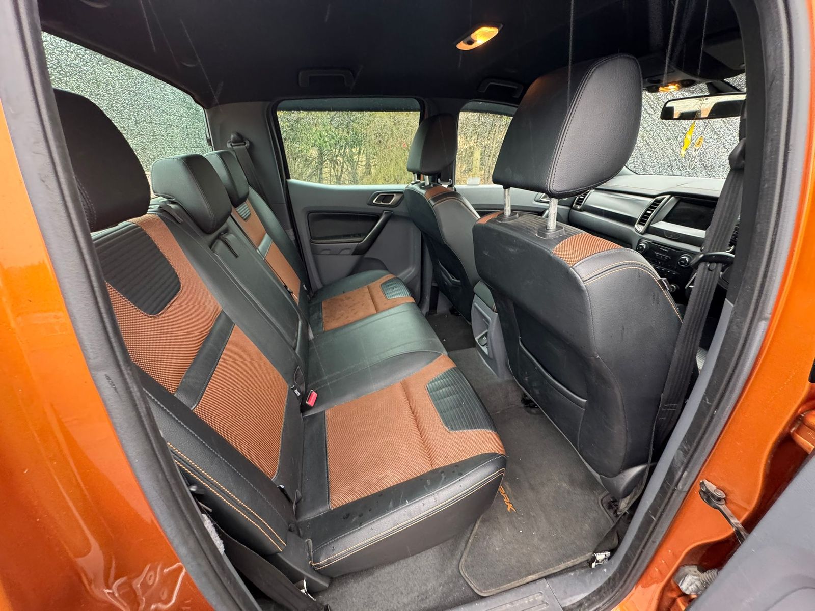 Step inside the spacious Double Cab and experience premium comfort and versatility. The Wildtrak boasts high-quality leather-trimmed seats with stylish orange accents and ample legroom for passengers. The practical layout includes a multifunction steering wheel, user-friendly dashboard, and generous storage solutions – perfectly catering to both work and play. With the rear bench offering easy fold-flat functionality, this pickup adapts effortlessly to your hauling needs.